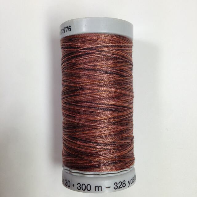 少し太番手なのでマット感のある、ボリュームあるステッチが可能です。ヨーロッパのユニークな段染です。ミシンも手縫いもOK。300m巻。100%コットン。
