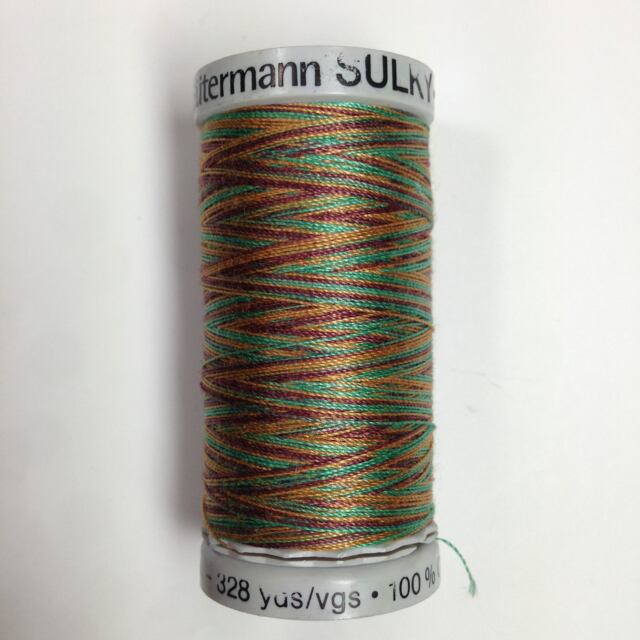 少し太番手なのでマット感のある、ボリュームあるステッチが可能です。ヨーロッパのユニークな段染です。ミシンも手縫いもOK。300m巻。100%コットン。